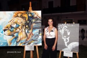 “Barbara Palmieri è una pittrice che esplora la relazione tra passato e presente, con particolare attenzione ai simboli e ai miti della Magna Grecia. Le sue opere vivono di