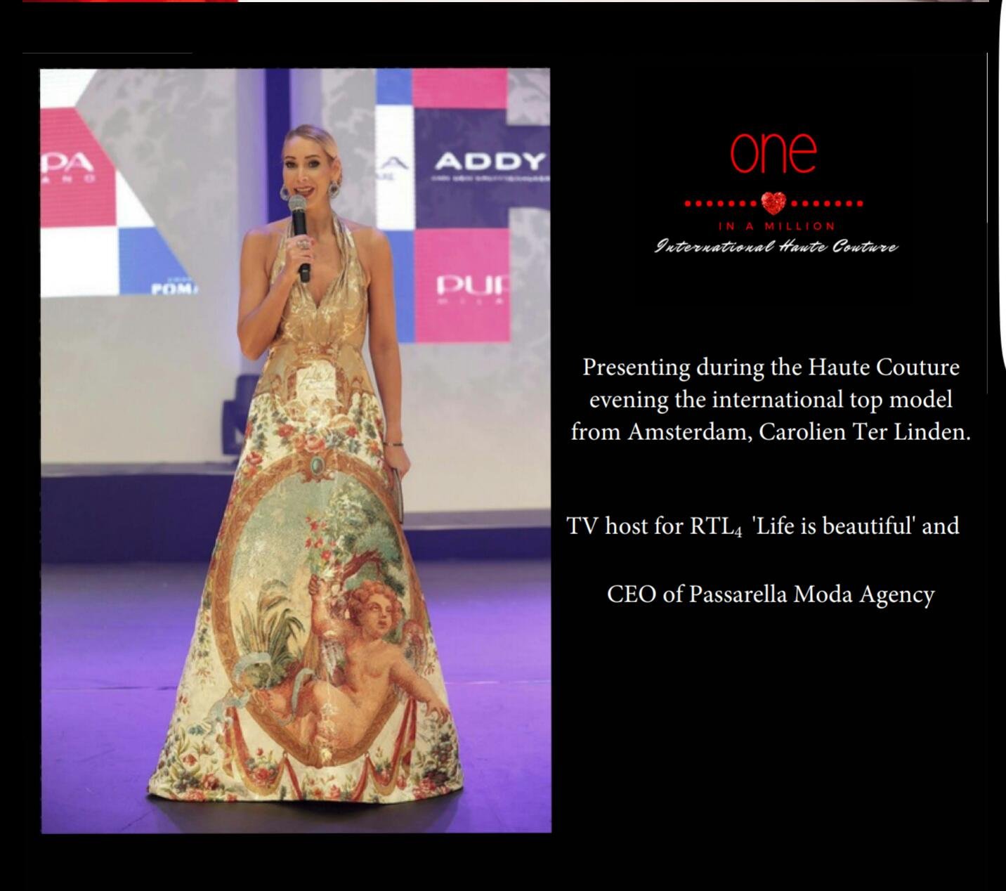 The evening is presented by the Dutch presenter, Carolien Ter Linden, Rtl4 Amsterdam from the television program “Life is Beautiful”, International Top Model and Ceo Passerella fashion Agency.